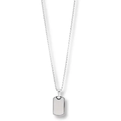 Graverbart halsband med hänge i stål. SpecifikationerMaterial: Rostfritt stålFärg: StålLängd: 70 cmMått häng…