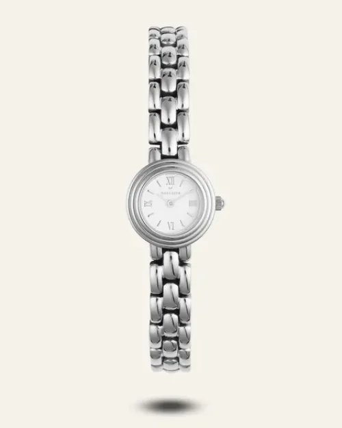 Mockbergs nätta vintage klocka. Ett tidlöst smycke som inte bara är en vacker detalj på handleden. Med sitt rep och stöttåliga mineralglas, rostfria stål länkarmband, är den lika hållbar som snygg. En tidlös klocka för alla tillfällen.
