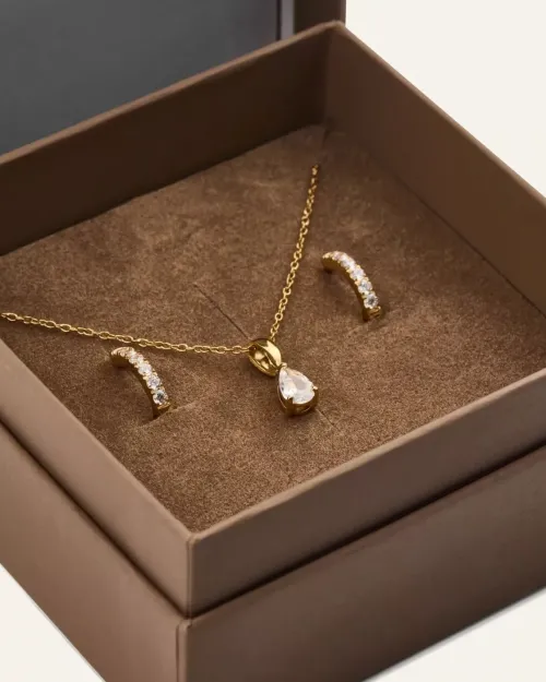 Ett stilrent set med halsband och Mockbergs bästsäljande örhängen. Designade för att ge en tidlös, klassisk look. Den perfekta presenten till någon du håller kär – eller till dig själv