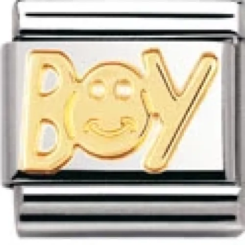 Nomination Classic. Ordet ”BOY” i 18k guld. Stål 10X8mm.