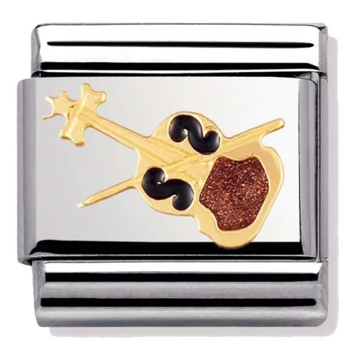 Original charm i rostfritt stål för nomination kompositabla klassiska armband med Fiol i 18K guld och emalj.