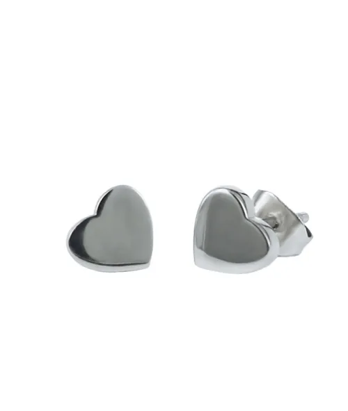 Vackra, stilrena hjärt-formade örhängen på stift i blankt Stål.
