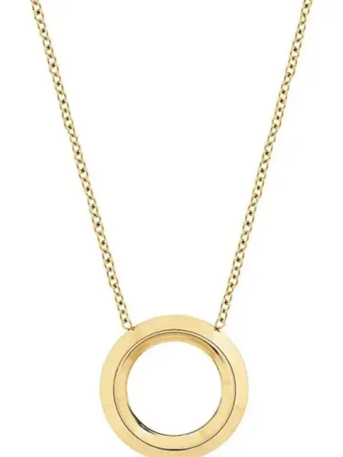 Serien Aralia är mycket stilfulla smycken med sina cirklar och skarpa kanter som du bär både till vardag och fest. I Aralia halsband hålls den fina ringen av en nätt ankarkedja som är direkt direkt på ringen, ses här i blank 14K guldplätering. Aralia är insprirerad av Xavier Veilhans konst med skarpa kanter och blanka hårda ytor. Bär gärna någon av creolerna tillsammans med halsbandet. Gillar du Aralia, men vill ha stenar så ska du också titta på Zinnia.