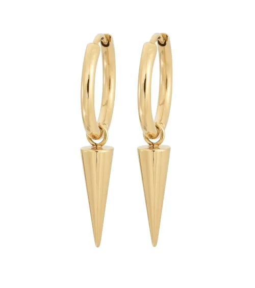Fina Peak hoops har en långsmal nit hängande i ringen som ger ett härligt effektfullt örhänge. I Peak hoops kan man ta av niten och bara använda hoopsen som de är, eller hänga på något mer om man vill. Peak hoop ses här i blank 14K guldplätering.