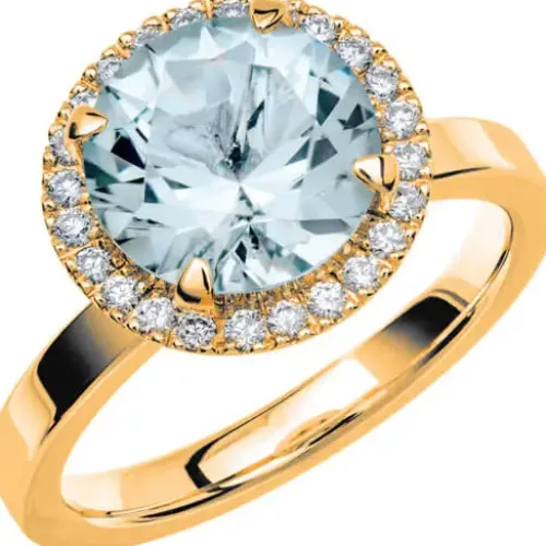FAIRYTALE 9 AkvamarinMaterial: GuldÄdelstenar: Briljantslipad Akvamarin 9,5mm ca2,60ct + dia 24×0,01 Total Carat Diaman…