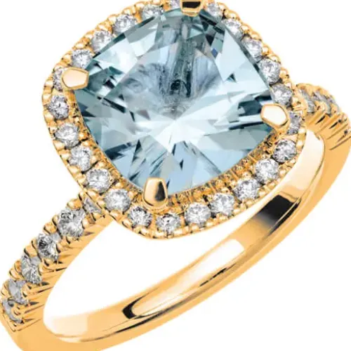 FAIRYTALE 12 AkvamarinMaterial: GuldÄdelstenar: Kuddslipad Akvamarin 9mm ca2,80ct + dia 24×0,01/12×0,02 Total Carat Dia…