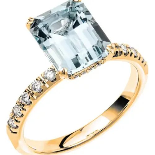 FAIRYTALE 14 AkvamarinMaterial: GuldÄdelstenar: Smaragdslipad Akvamarin 10x8mm ca3,00ct + dia 20×0,005/10×0,02 Total Ca…