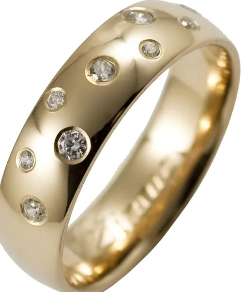 Ringen Zinnia 0,16ct är en lätt kupad ring med 2st 0,03ct w/vs 3st 0,02ct 4st 0,01ct w/vs