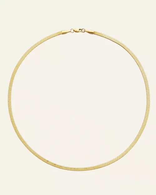 Elegant snake-halsband. Matchar perfekt med snake-armbandet i denna kollektion. Kedjan är tillverkad i massivt rostfritt stål som sedan har en 18K guld PVD-beläggning vilket gör den mycket slitstark och dessutom vattentålig. Bada, duscha och träna i detta smycke utan att oroa dig för att det ska tappa färg. Förlängningskedjan går att ta av om man önskar.