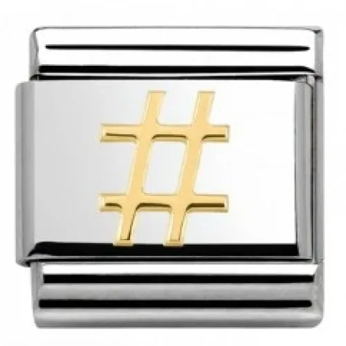 Nomination Original Charm för Classic Composable Armband med Hashtag -symbol i rostfritt stål och 18K guld.