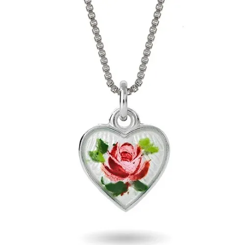 Smycken med rosmotiv. Många som känner igen den från sin barndom. Kanske får det ut några bra minnen? Smyckena är i silver 925 och belagda med emalj.